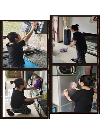 支部积极分子马奕璐同学为了帮助父母减轻负担,主动承担家里打扫家务的任务。她说到:“在清理的过程中,我发现清洗拖把的更好方式。动手动脑解决实际问题是通过劳动带给我的最大收获。劳动是很好的解压方式,虽然辛苦,但苦中带甜。实践出真知,劳动如此,学习也是一样,所以,在今后的学习当中我会更加努力,不断地充实、不断完善自己。”