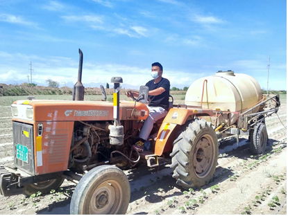 支部党员张金龙同志在每天学习之余驾驶拖拉机前往自家棉花地帮助父母喷洒农药。张金龙同志说到:“人的成长就像地里的青苗,任凭何种风吹雨打、狂风肆虐也要时刻保持着不惧风雨、奋发向上劲头。切实做到勤于创造、勇于奋斗、保持干劲,真正做到以辛勤劳动为荣,以好逸恶劳为耻,切身体会了劳动最光荣、劳动最崇高、劳动最伟大、劳动最美丽的道理。”