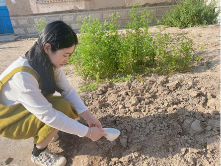 支部积极分子马畅同学走入田地亲身感受播种的过程,她讲到:“通过此次劳动我切实体会到了食物的来之不易,虽然现在一部分地区已经实现了机械化劳作,但我们仍应记住劳动的艰辛并珍惜粮食。作为新一代的我们,在党的羽翼下长大,也将在党的引领下搏击长空。我们有朝气,有锐气,有勇气,更有底气,无论将来哪个行业,未来都将会有我们的身影。请党放心,强国有我!”