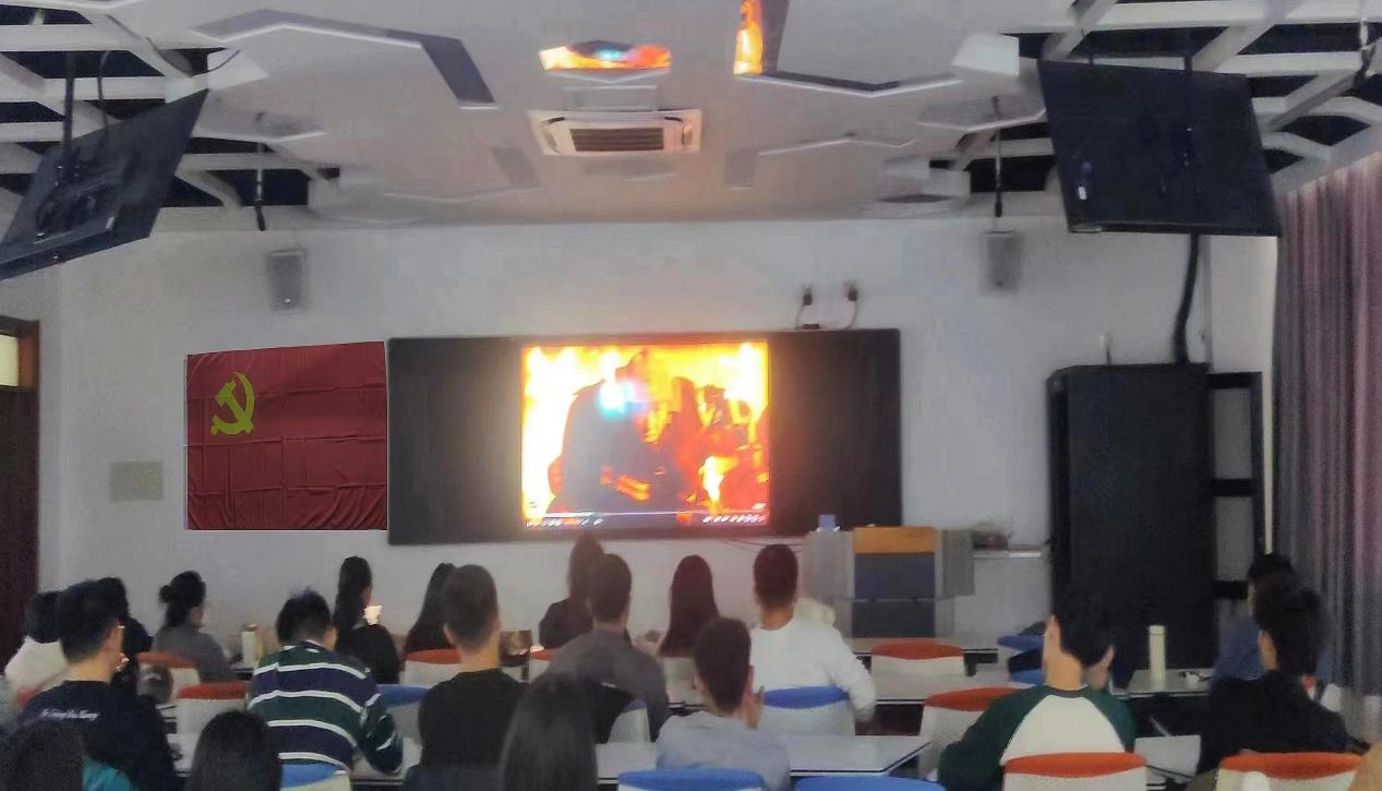 11月9日是全国消防日,为进一步普及消防安全知识,增强全体党员及积极分子消防安全意识,提高消防安全能力,2023年11月9日太阳集团tyc5997学生第三党支部于教学楼H505开展"关注消防,生命至上"主题党日活动,观看以防火救灾为教育题材的影片——《烈火英雄》。