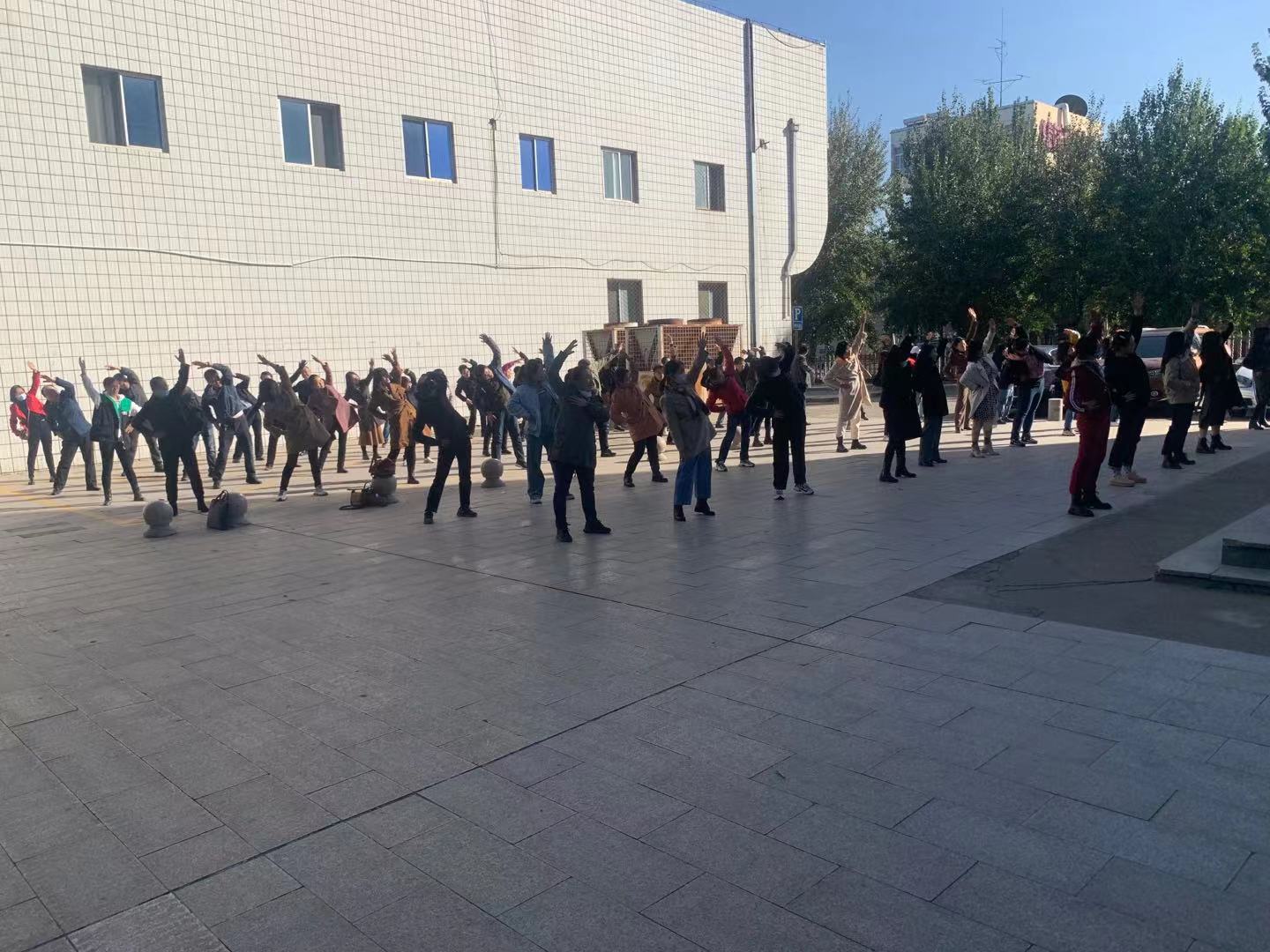 为进一步落实党史学习教育“我为群众办实事”实践活动工作,缓解教职工工作压力,提升幸福感,并团结动员各民族教职工以更加饱满的热情和昂扬的精神状态庆祝中华人民共和国成立72周年和校庆65周年,使各民族教职工投入到和谐教育建设之中,学院于10月23日下午在腾飞楼A前广场组织各民族教职工学做第九套广播体操活动和学唱《爱我中华》、《我和我的祖国》爱国歌曲。