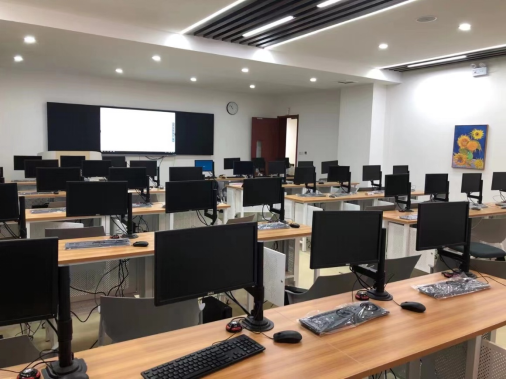实验教学中心总使用面积1200多平方米,2021年9月开始进行智慧实验室改造项目,改造后实验室拥有电脑设备150台,桌面多触电显示屏电脑6台,智慧黑板4套,智慧实验室打造投入200多万元。实验教学中心改造后具有150个普通机位,教学环境得到了极大的改善。