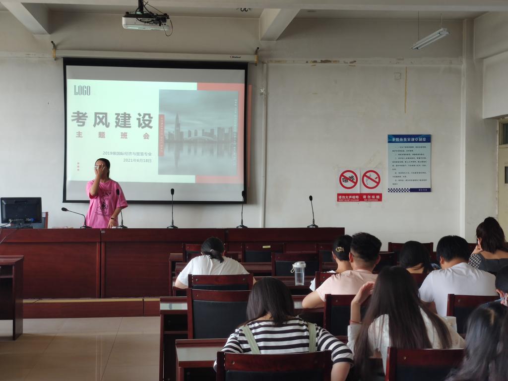 2019级国际经济与贸易专业于2021618日在腾飞楼A413,召开诚信考试考风建设主题班会。
