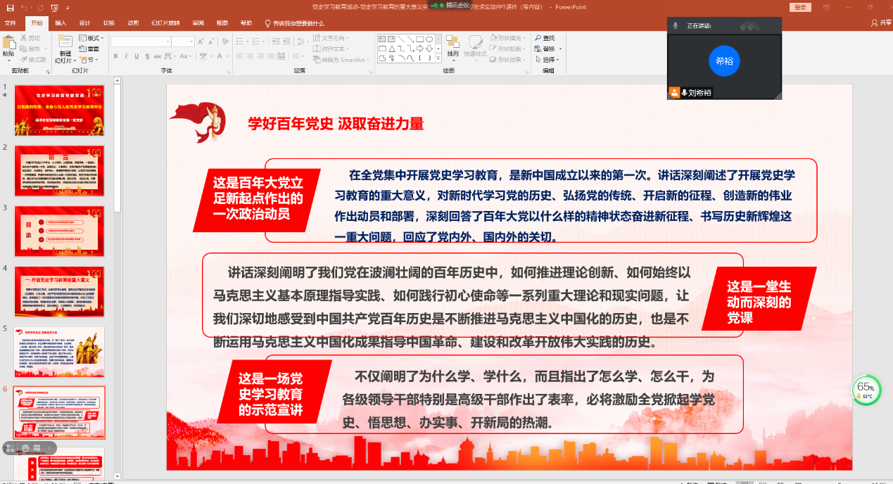 2021年3月26日,太阳集团tyc5997学生第一党支部书记刘希裕做了题为《以饱满的热情,全身心投入到党史学习教育中去》的专题党课,支部全体党员参加了党课活动。