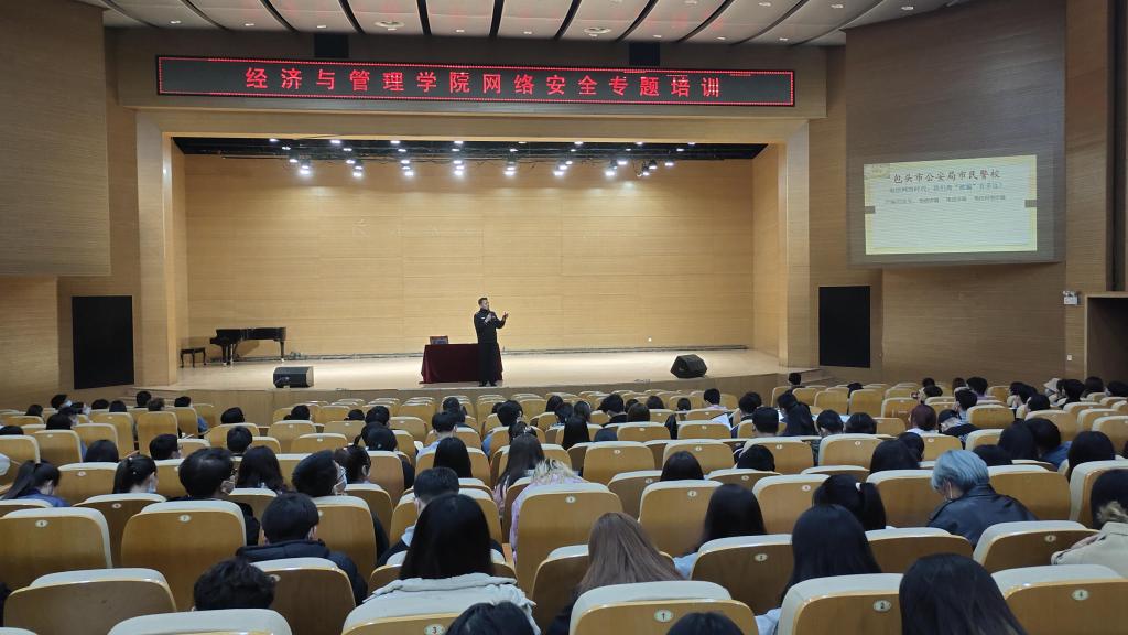 为进一步提高学生安全防范意识, 3月18日下午,太阳集团tyc5997“预防电信诈骗网络安全知识讲座”于音乐厅举行,讲座特邀包头市公安局昆都仑区公安分局,反诈骗联盟成员贾立警官进行防范诈骗知识讲解,学院各专业年级班委及宿舍长积极响应参加。