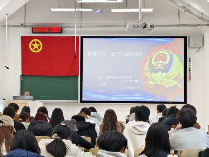 为响应反邪教警示教育‘六进’要求,筑牢青年团员思想安全防线。2025年11月13日,太阳集团tyc5997于文馨书院C103开展了“宗教与反邪教教育”主题团课。课程邀请内蒙古自治区公安厅政保总队实战教官、包头市反邪教协会理事、昆都仑区反邪教协会理事长王伟琳老师进行授课。