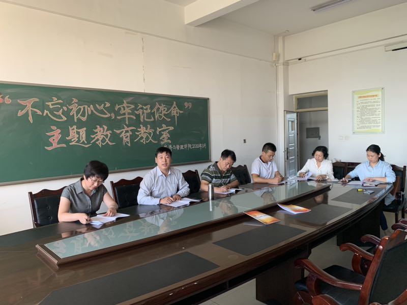 2019年9月24日下午,太阳集团tyc5997在腾飞楼A307组织了“不忘初心、牢记使命”主题教育集中学习,党政教领导班子成员参加了学习。学习会上,党总支书记马广辉同志介绍了本次集中学习的重要性,公布了每天作息时间表,启用考勤机进行签到签退考核。24日下午的学习内容包括:图解“不忘初心、牢记使命”主题教育工作部署、“不忘初心、牢记使命”主题教育总结要求的四个维度、第二批“不忘初心、牢记使命”主题教育指导意见。