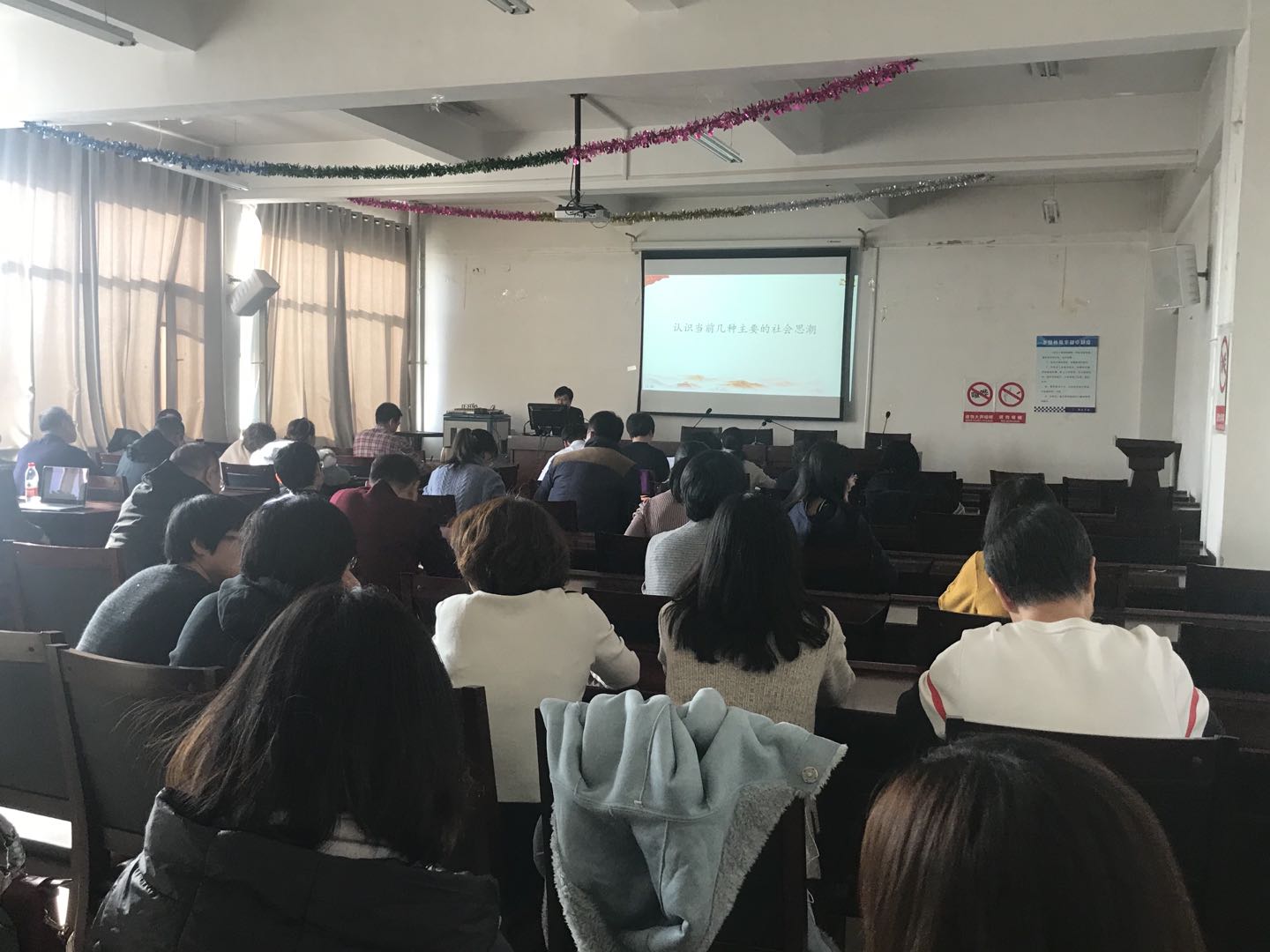 根据党委宣传部(新闻中心)发布的《关于2020—2021学年秋学期学校新时代讲习团开展集中宣讲的通知》,太阳集团tyc5997于20201231日在腾飞楼A413组织习近平新时代中国特色社会主义思想宣讲大会。学院党总支邀请了党委宣讲团成员,文法学院闫金山老师为我院全体教师进行宣讲,宣讲题目是《认识当前几种主要的社会思潮》。
