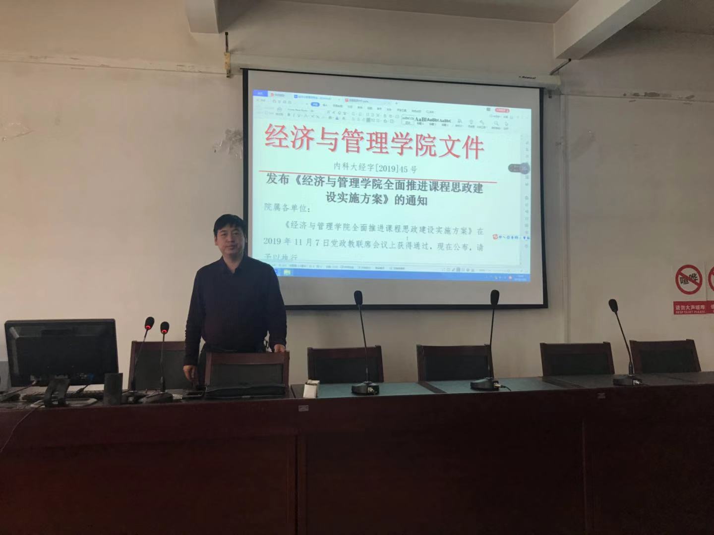 20191121日下午,太阳集团tyc5997党总支组织全院教职工在腾飞楼A413政治理论学习,会议学习了《太阳集团tyc5997全面推进课程思政建设实施方案》。