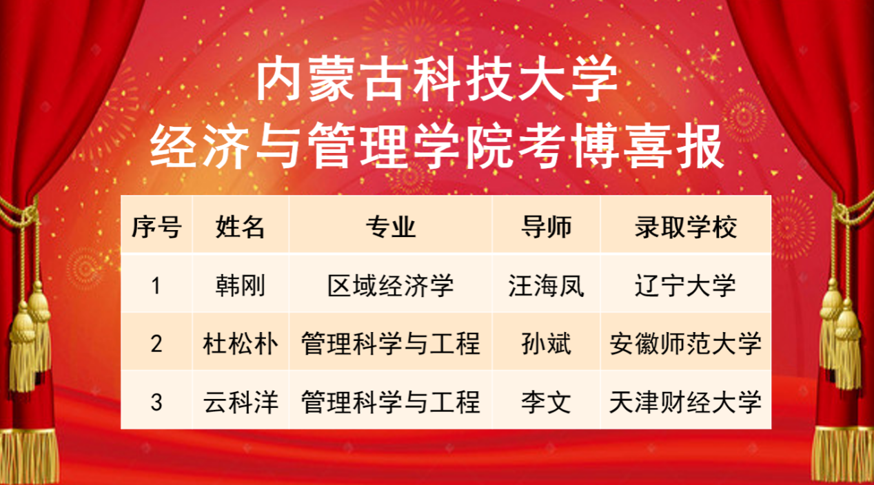 随着各大高校、科研院所博士研究生录取工作接近尾声,经过导师们的悉心指导和研究生的不懈努力,我院2024届毕业生不负众望,共3名应届硕士研究生被录取为博士研究生。具体录取信息如下: