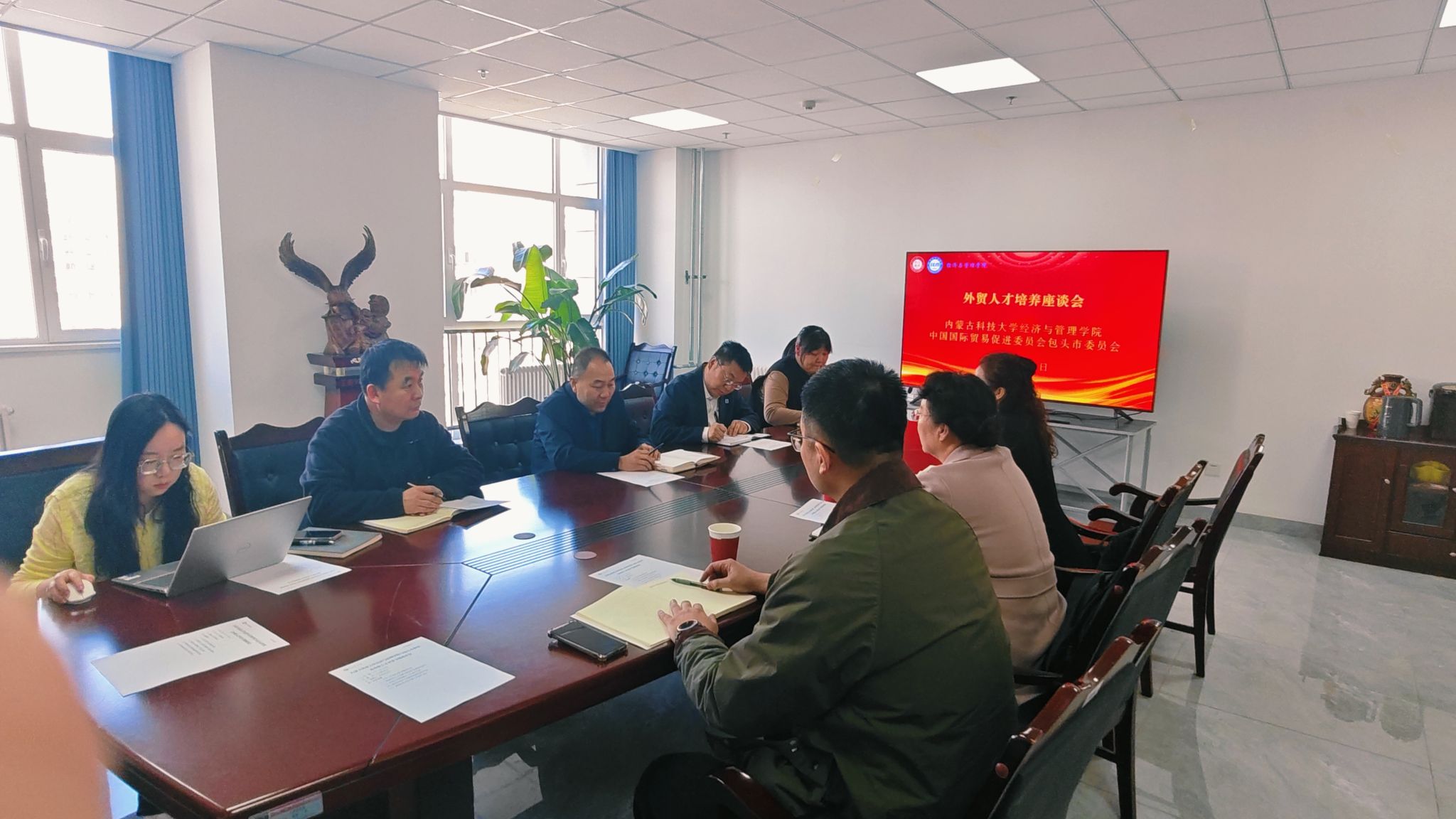 座谈期间,双方紧密结合包头市外贸产业发展实际、人才需求导向及学院人才培养现状,聚焦持续优化外贸人才培养体系、切实提升人才培养质量、推动产教深度融合等核心议题,进行了深入交流与探讨,达成多项共识。