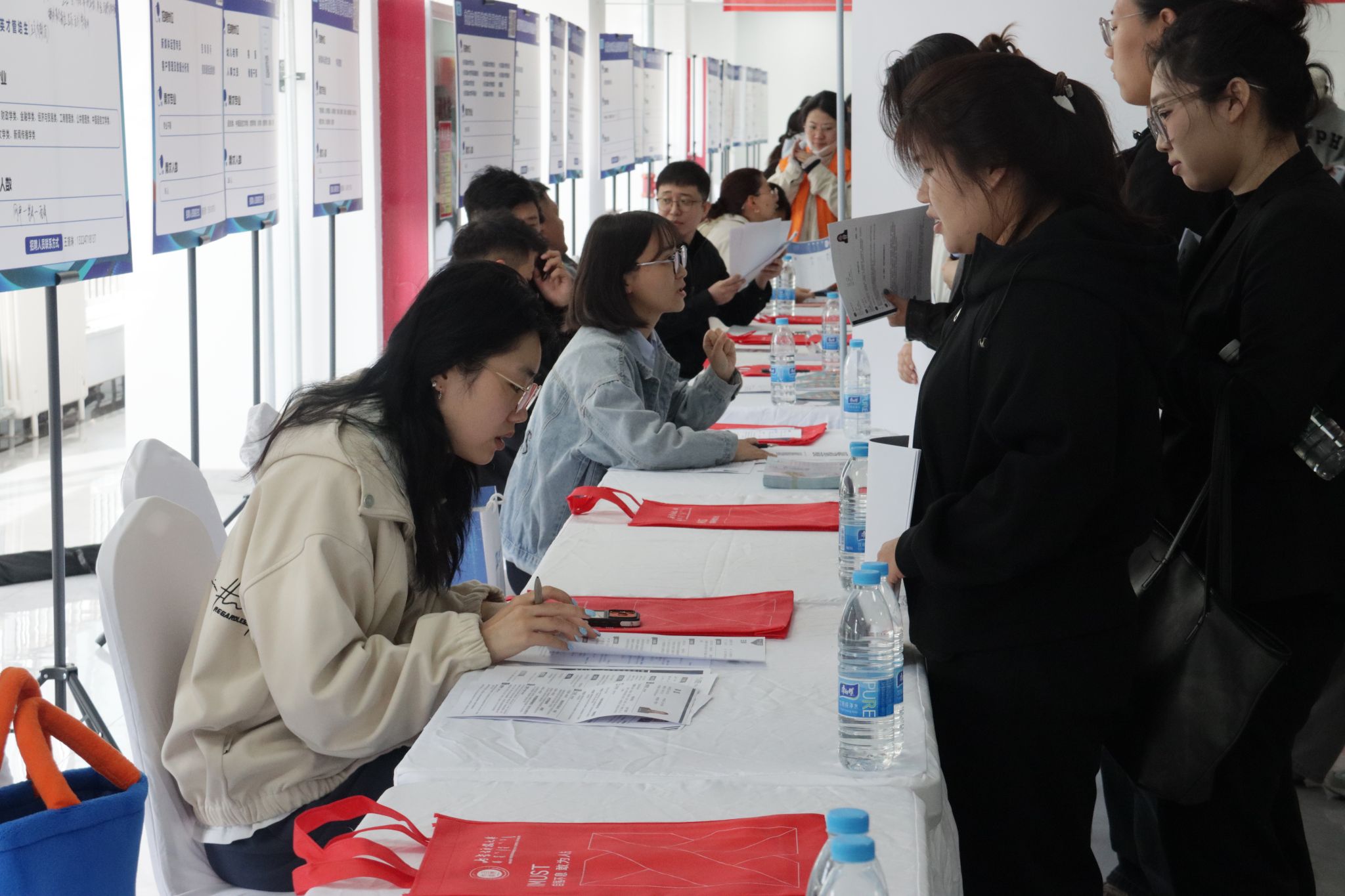 招聘会现场人头攒动、氛围热烈,来自教育咨询、文化传媒、法律服务、金融保险、科技服务、餐饮管理等多个领域的40余家优质企业携海量岗位参会,其中包括北京恒都(包头)律师事务所、中信银行股份有限公司信用卡中心包头分中心、北京永辉超市有限公司等行业标杆企业,岗位覆盖行政、人力、营销、教育、法务、传媒等多个方向,全面适配不同专业背景毕业生的求职需求。