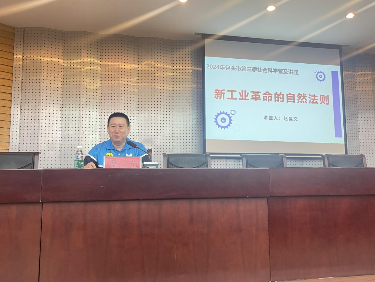 6月27日,我院邀请北京市社科联副主席,中山大学吴小兰讲席教授,岭南学院教授、博士生导师,中山大学国家发展研究院院长赵昌文教授,以《新工业革命的自然法则》为题作专题讲座。包头市社科联党组书记、主席、市社科院院长梁义光主持。北京市社科联、自治区社科联、包头市社科联及我院师生共计150余人参加本次讲座。
