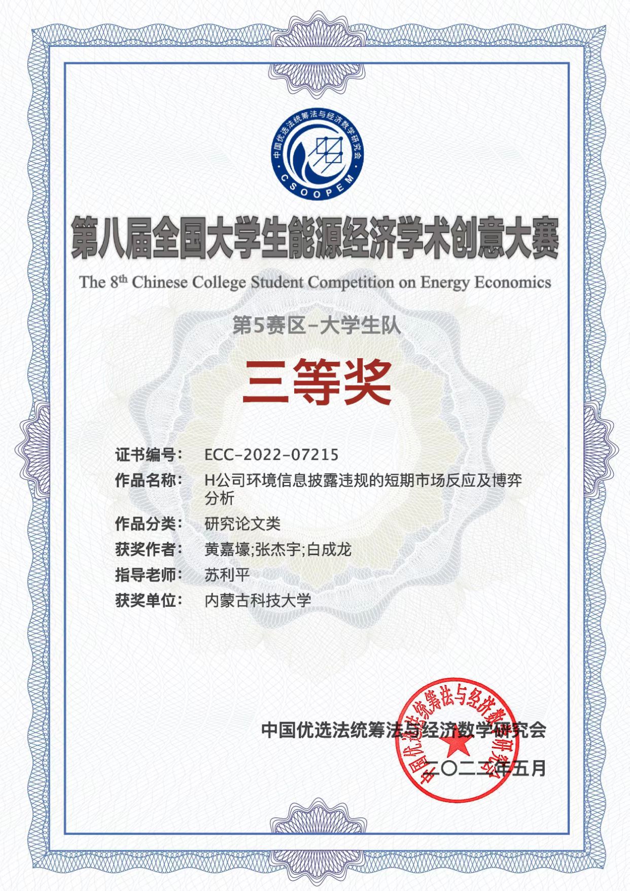 上一条:太阳集团tyc5997师生荣获第八届全国大学生能源经济学术创意大赛三等奖