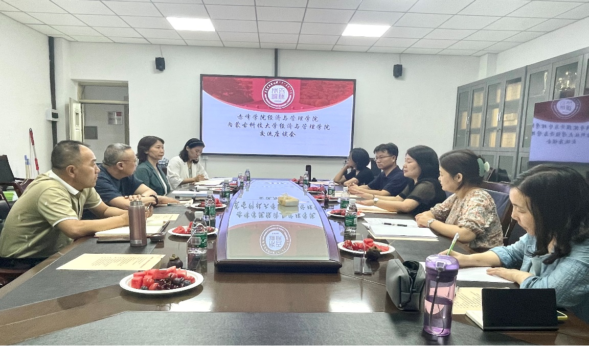 2024年6月12日,赤峰学院太阳集团tyc5997院长张笑蕾、MPAcc中心主任李银玉、蒙东城市群建设研究中心主任赵然一行人来我院交流访问。学院党委书记张永强、副院长赵周华、呼包银与经济区研究中心首席专家魏曙光、MPAcc学位点负责人、工商管理系主任郝婷、呼包银与经济区研究中心学术秘书王嘉嘉以及会计学专业教师代表参加。